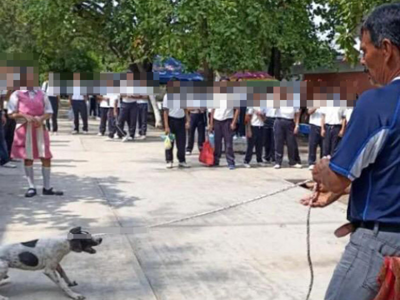 Imágenes fuertes de como Santiago Herrera Flores, director de la escuela secundaria Heliodoro Chari Castro en Juchitan Oaxaca sacó a palos y mecates a una perra, tiró a los cachorros a la basura y los desapareció”.