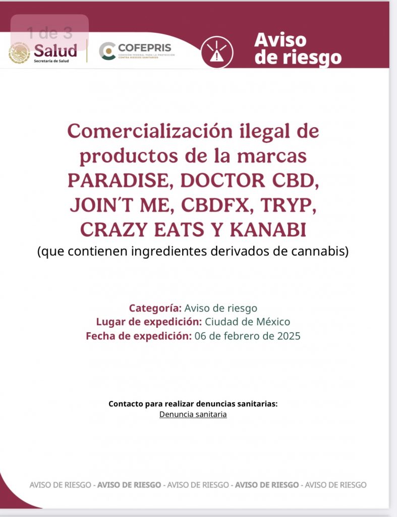 COFEPRIS informa que los productos de las marcas Paradise, DOCTORCBD,