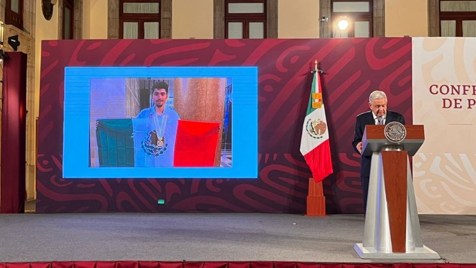 El presidente también felicitó a Rogelio Guerrero, de 17 años, originario de Aguascalientes, quien ganó la medalla de Oro en la Olimpiada Internacional de Matemáticas en Japón el pasado 11 de julio de 2023.