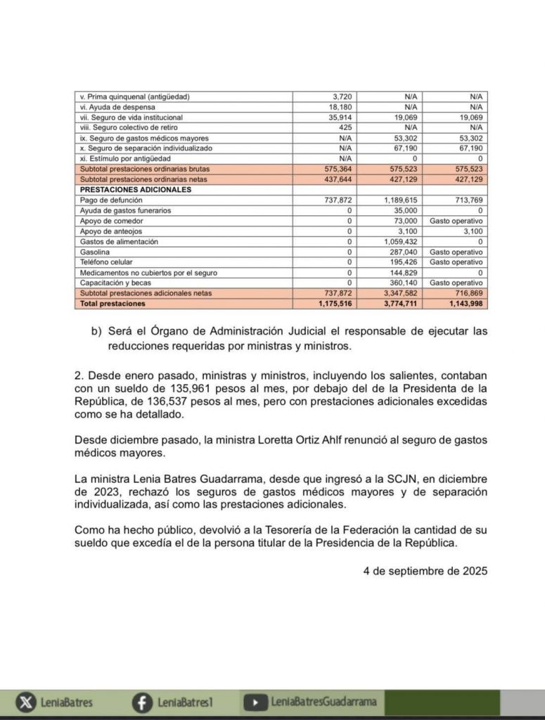 - Sólo las ministras Lenia Batres y Loretta Ortiz habían renunciado total o parcialmente