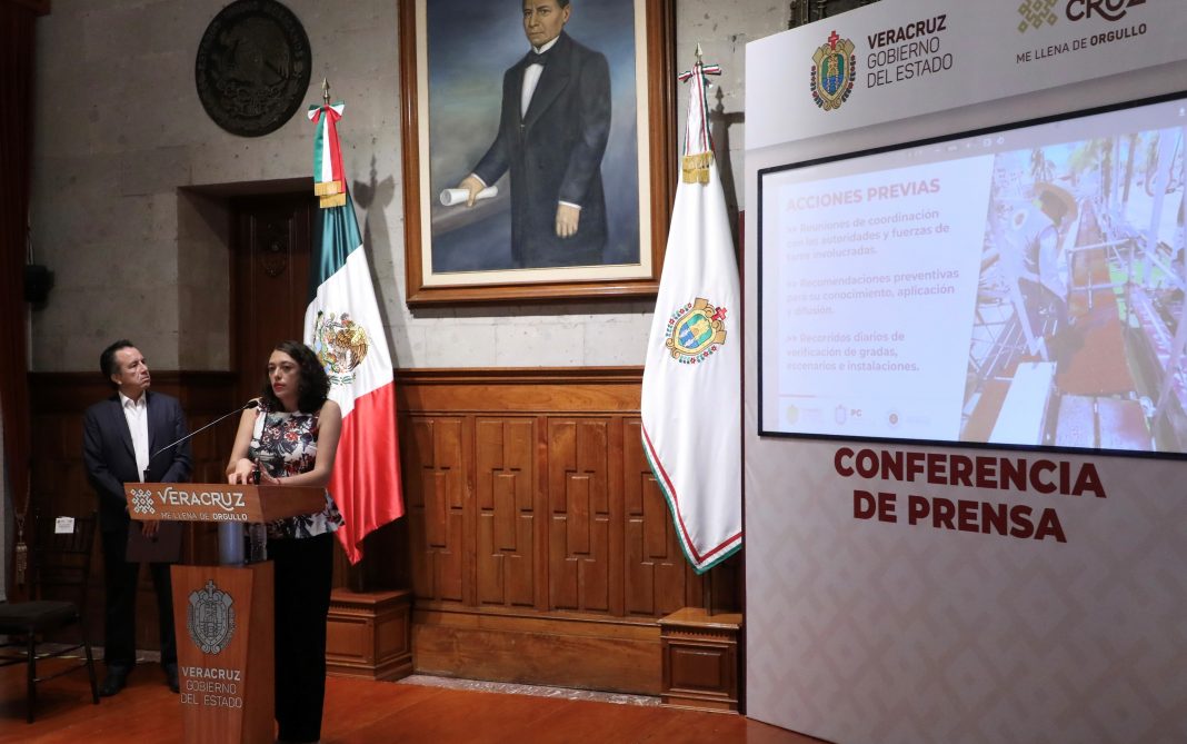Garantizó la correcta instalación de gradas, escenarios y tomas de energía eléctrica, agua y gas, al agregar que no hay pronóstico aún de condiciones meteorológicas adversas, como nortes, aunque existe el protocolo para reprogramar o suspender actividades, además de ofrecer atención pre-hospitalaria o traslado a unidades médicas en caso necesario.