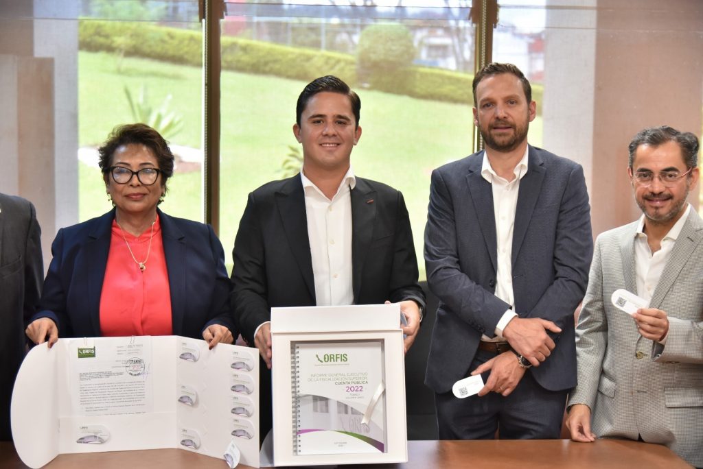 En cumplimiento con el Artículo 58 de la Ley de Fiscalización Superior y Rendición de Cuentas para el estado de Veracruz, el Congreso del Estado, por conducto de la Comisión Permanente de Vigilancia, presidida por el diputado Rafael Gustavo Fararoni Magaña, realizó el acto protocolario en el que la titular del Órgano de Fiscalización Superior del estado (Orfis), auditora Delia González Cobos, entregó los Informes Individuales y el Informe General Ejecutivo de la Cuenta Pública 2022.