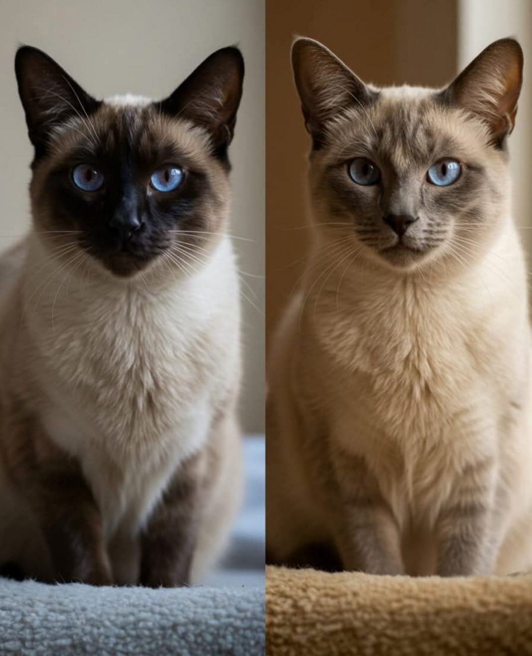 Esto significa que si mantuvieras a un Siamés en un ambiente constantemente frío, se volvería casi completamente oscuro. Y si lo mantuvieras siempre caliente, permanecería casi blanco. Son literalmente gatos camaleónicos controlados por la temperatura.