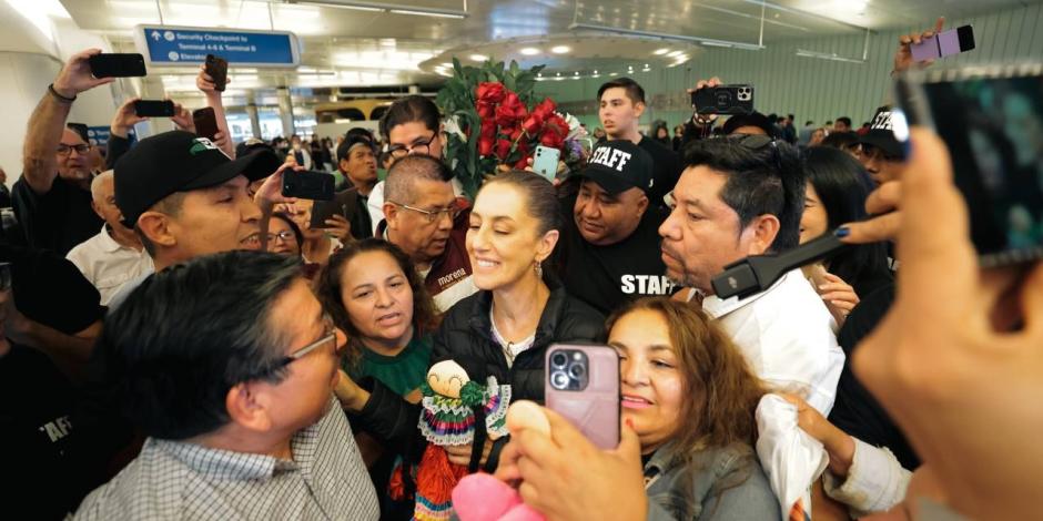 Claudia Sheinbaum llega a Los Ángeles, California con el objetivo de reunirse con la militancia mexicana de Morena de la entidad en el Teatro Million Dollar a las 16:00 horas.